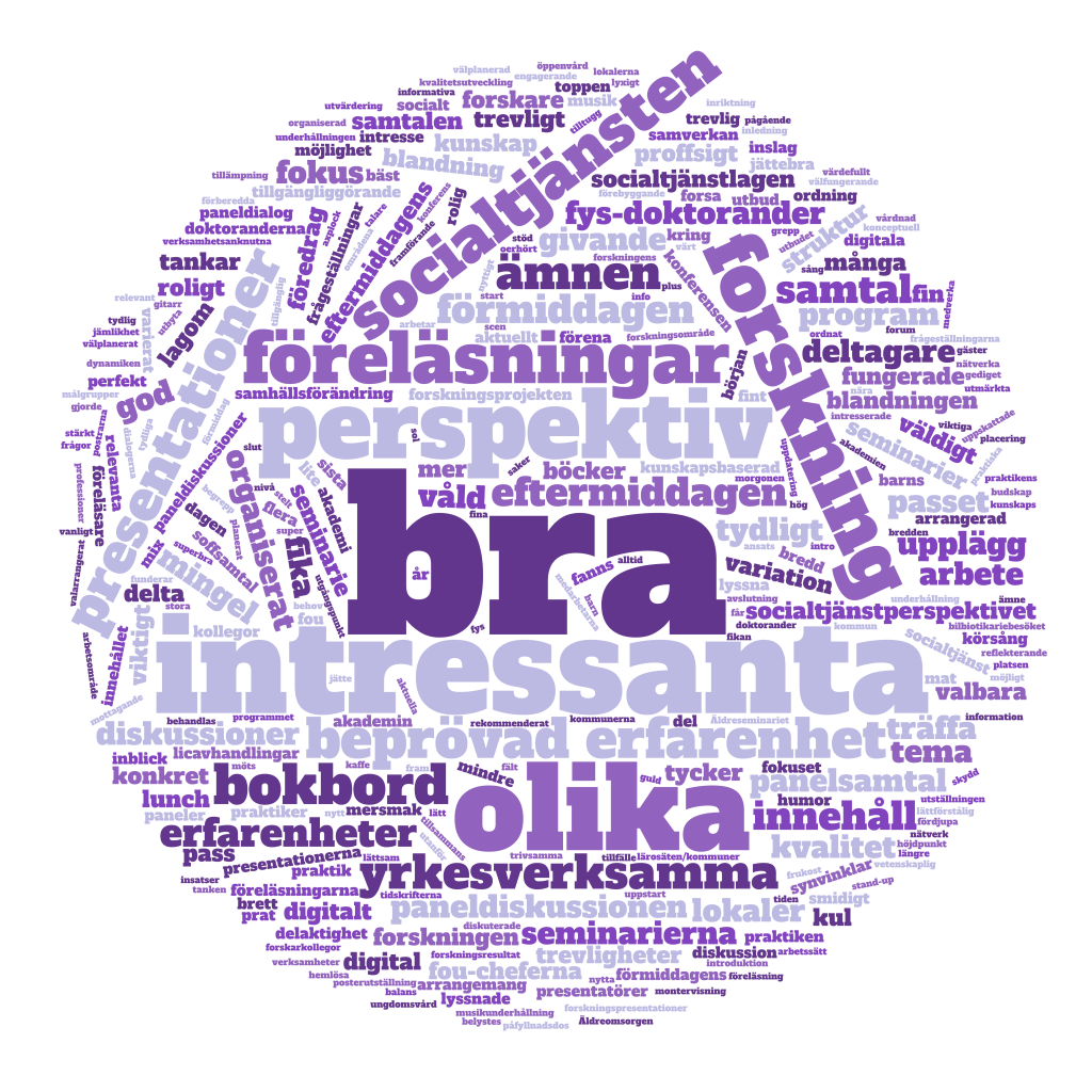 Förmiddagen bjöd på samtal med olika kunskapsaktörer och socialpolitiska frontfigurer. Eftermiddagen ägnades åt presentationer av färsk forskning som gav möjlighet att djupdyka in i diskussioner och perspektiv med vetenskaplig anknytning, ledda av forskarskolans doktorander.